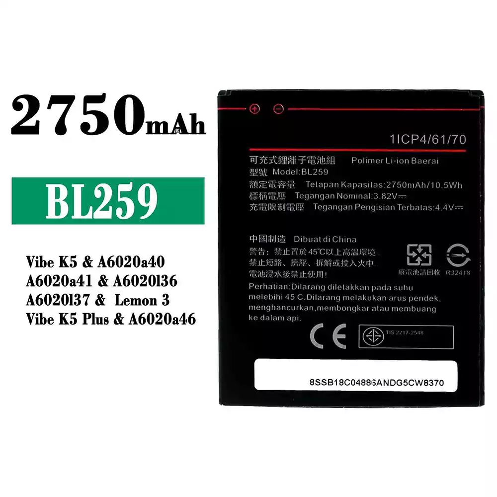 Battery BL259 for Lenovo Vibe K5 / A6020a40 / A6020a41 / A6020136 / A6020137 / Lemon 3 / Vibe K5 Plus / A6020a46