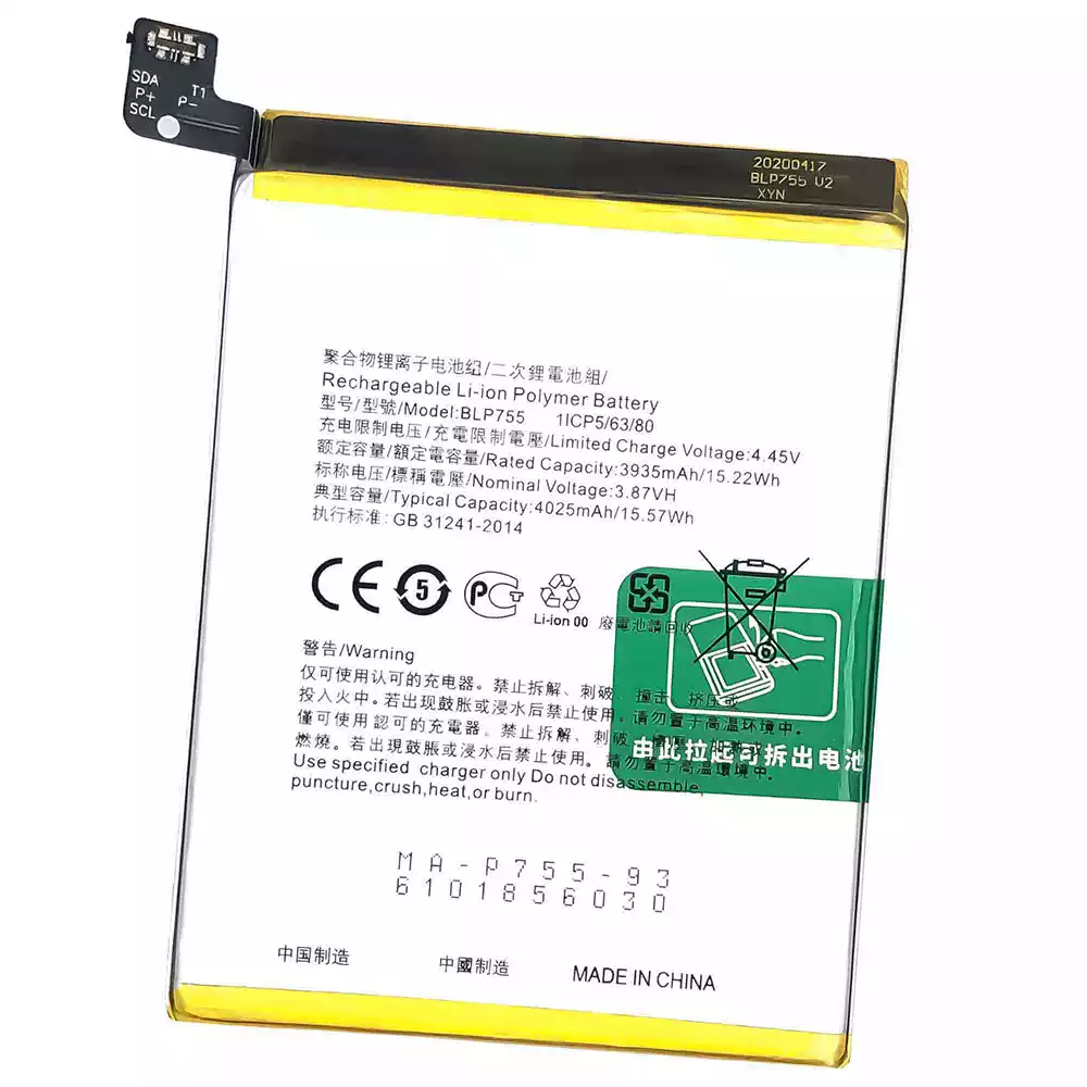 Battery BLP755 for OPPO Reno3 4G 2020 / Reno3 5G / Reno3 Pro / Reno3 Pro 5G / Reno3 Youth / CPH2009 / PCRM00 / PCRT00 / Find X2 Lite