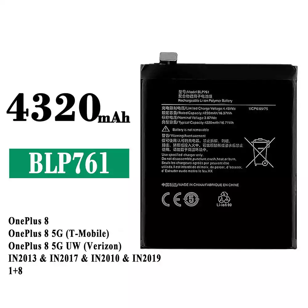 Battery BLP761 for OPPO OnePlus 8 / OnePlus 8 5G (T-Mobile) / OnePlus 8 5G UW (Verizon) / IN2013 / IN2017 / IN2010 / IN2019 1+8