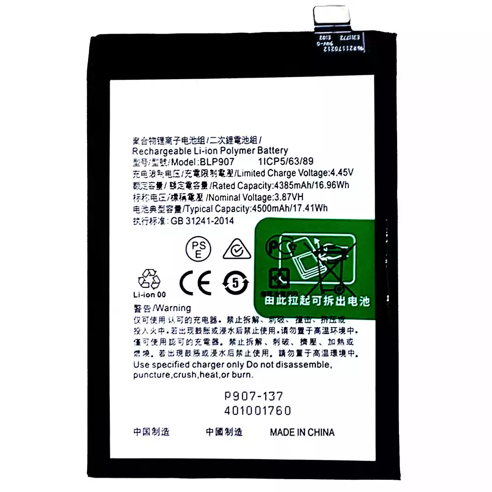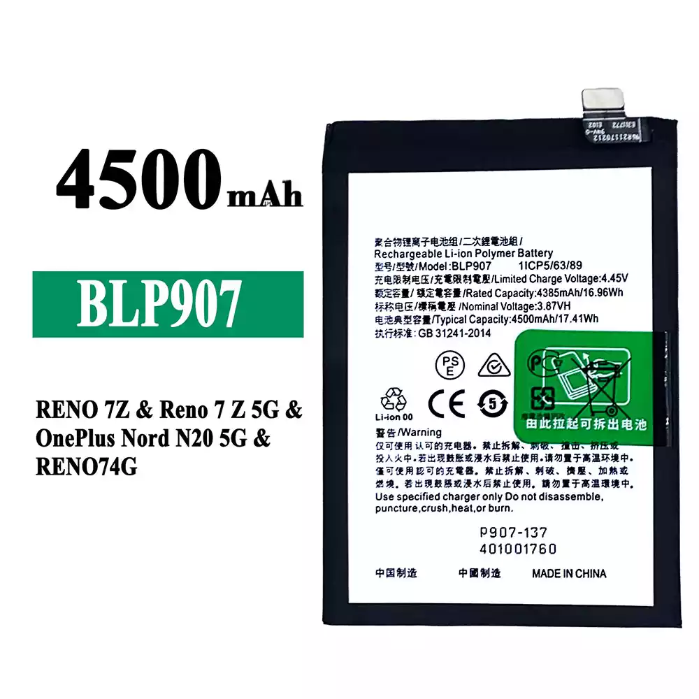 Battery BLP907 for OPPO RENO 7Z / Reno 7Z 5G / OnePlus Nord N20 5G / RENO 74G / RENO 8 4G