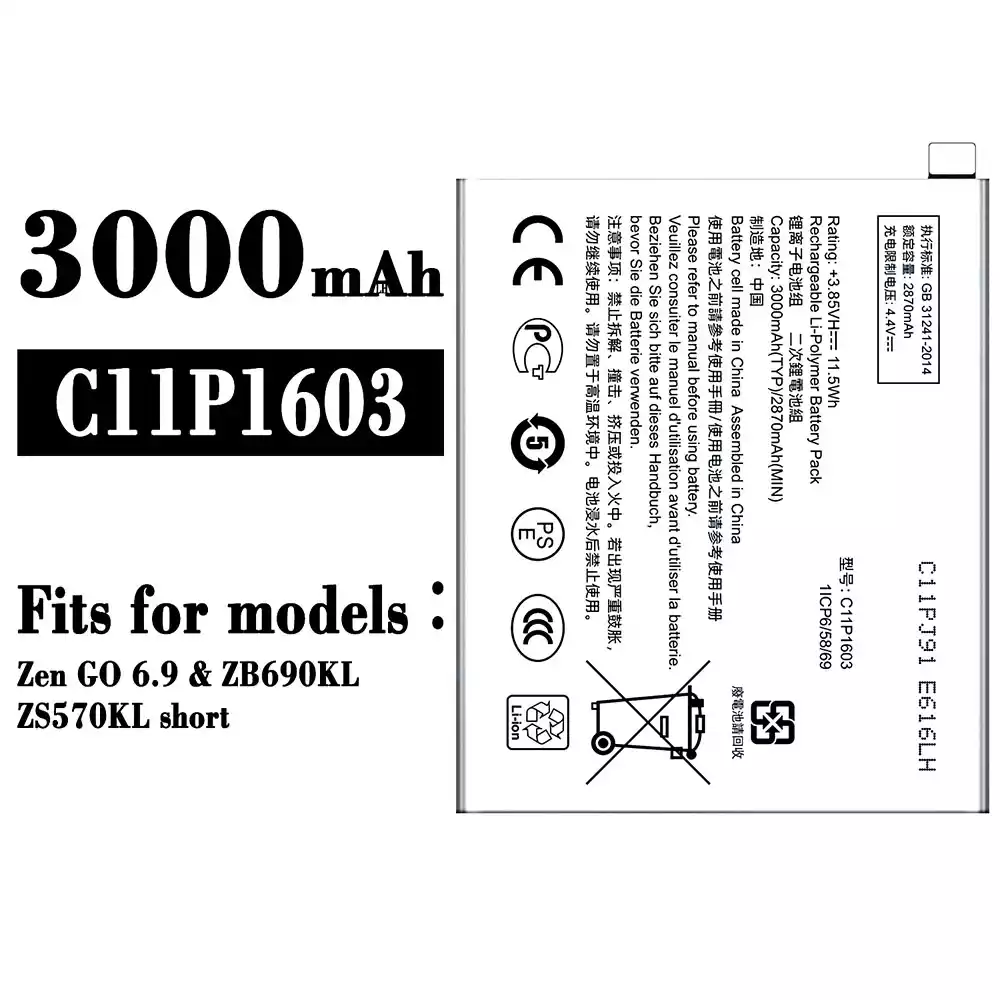 Battery C11P1603 for Asus Zen GO 6.9 / ZB690KL / ZS570KL Short