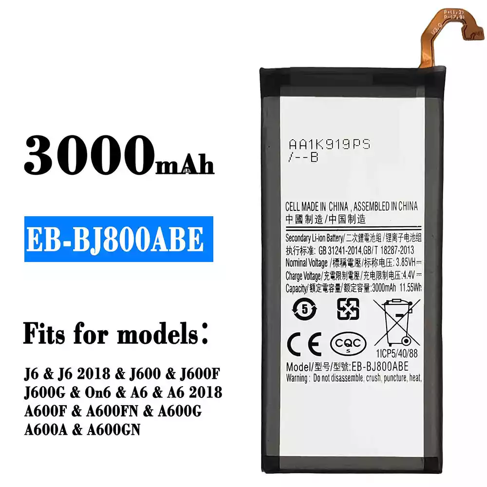 Battery EB-BJ800ABE for Samsung J6/J6 2018/J600/J600F/J600G/On6/A6/A6 2018/A600F/A600FN/A600G/A600A/A600GN/