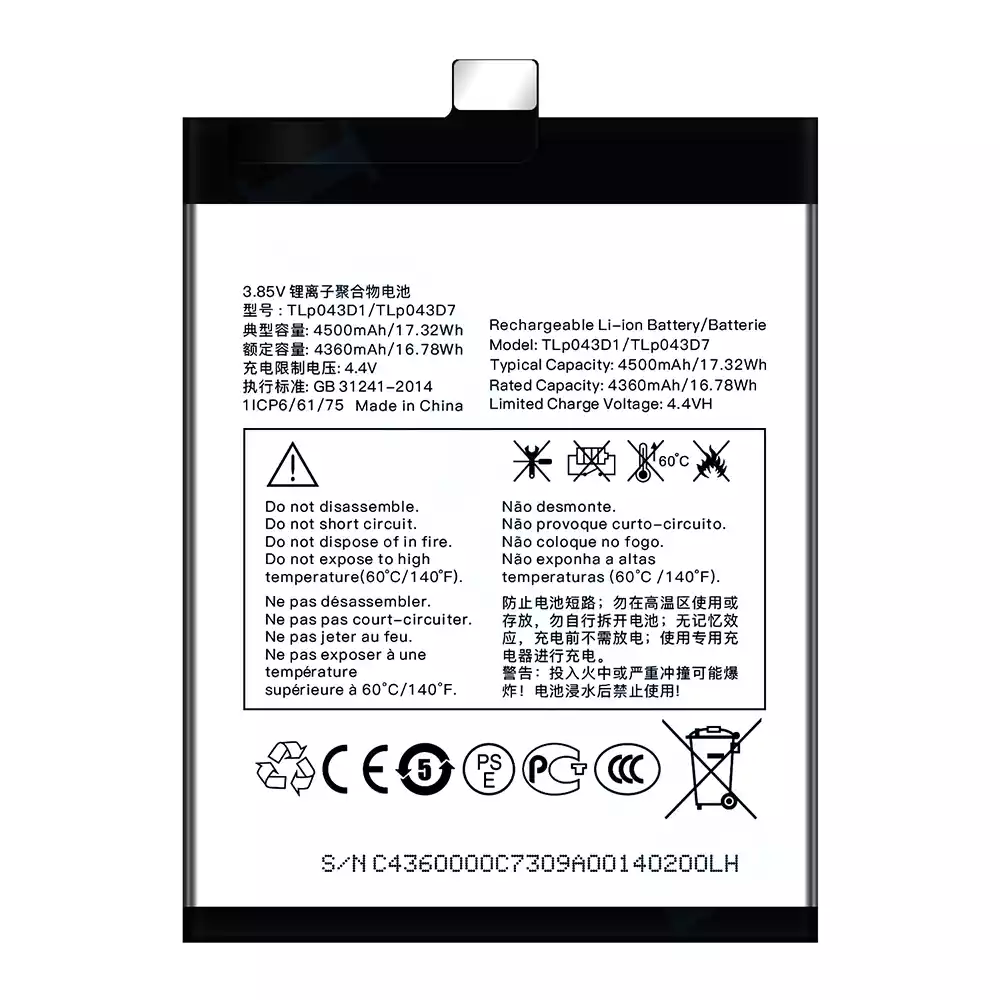 Battery TLP043D1/TLP043D7 for Alcatel TCL 10 Plus/TCL 20 Plus/TCL 10 pro/TCL 20 pro